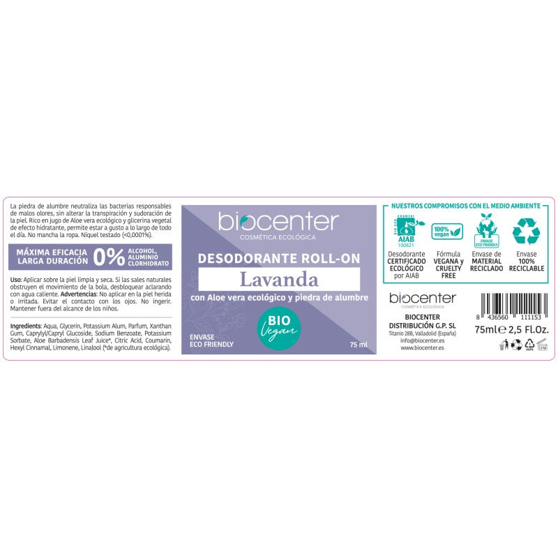 Desodorante natural Roll On - LAVANDA - Ecológico