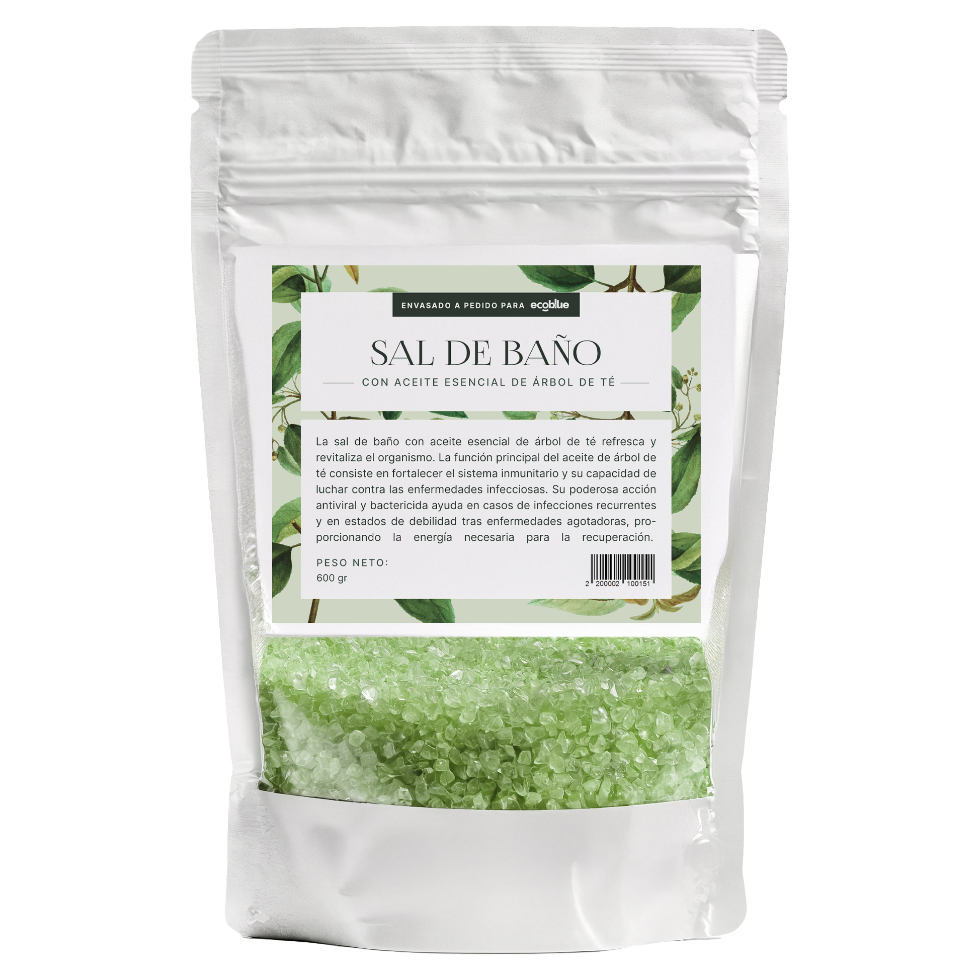Sal de baño con aceite esencial de árbol de té